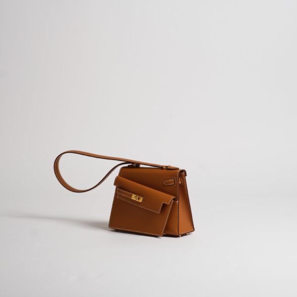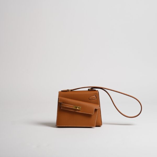 The Limited edition Kelly Sellier Desordre was launched in the Hermès AW 2022 collection. It is 20cm wide so it is slightly bigger than the Kelly Sellier Mini II which is 19cm wide. The asymmetrical double sided pocket design make it both useful yet innovative and modern.