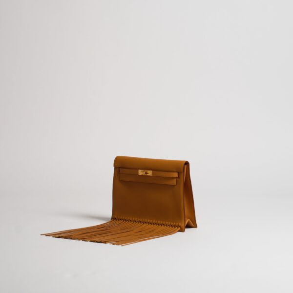 The Hermès Kelly Danse has had a revival. Following a highly anticipated comeback in 2019, this hugely popular bag has become one of the most sought- after Hermès styles.  The perfect complement to a modern lifestyle, this youthful design offers multiple styling options. Worn around the waist, across the body, over the shoulder, or as a backpack, this versatile piece transforms into a sophisticated clutch by detaching the strap, exuding effortless elegance for any occasion.  The ANATE limited edition version is with the fringe is highly collectable.