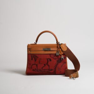Vintage Hermès 32cm Kelly Retourne horseprint canvas & barenia palladium hardware